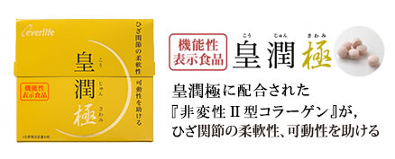機能性表示食品「皇潤 極(きわみ)」新発売! ひざ関節の柔軟性、可動性をサポートする「非変性Ⅱ型コラーゲン」を配合!